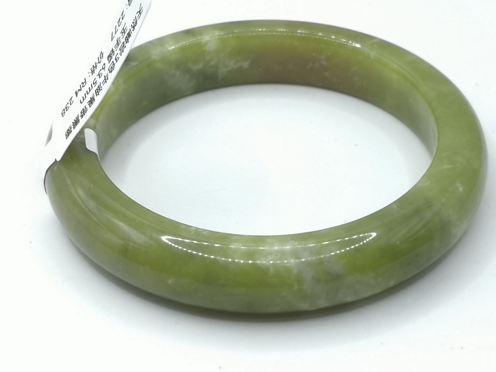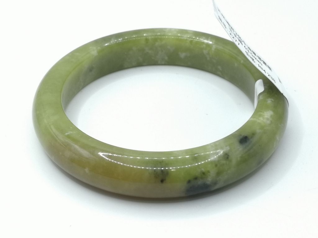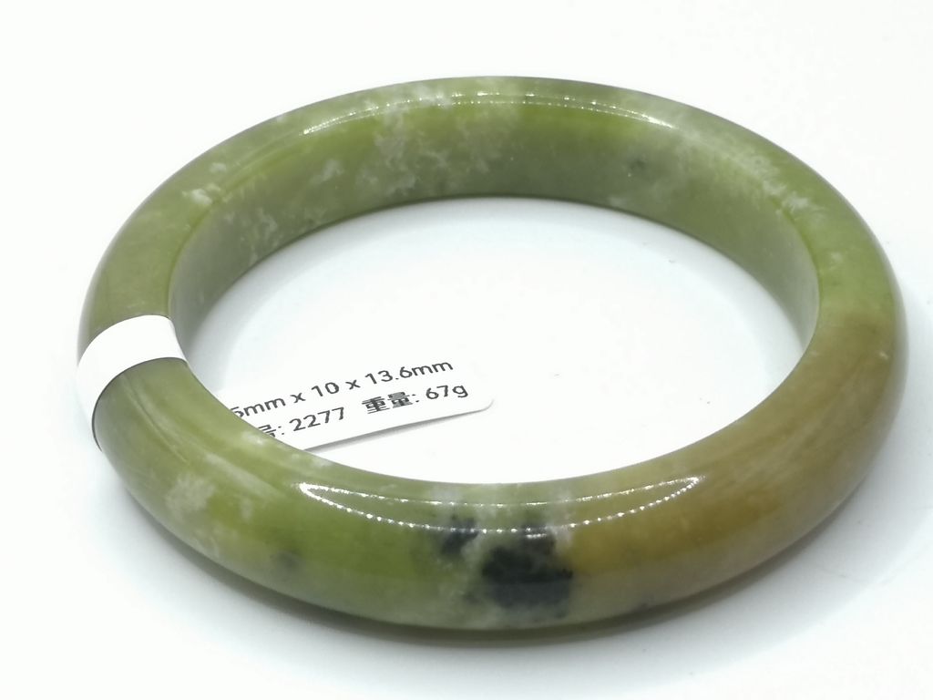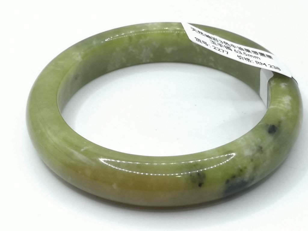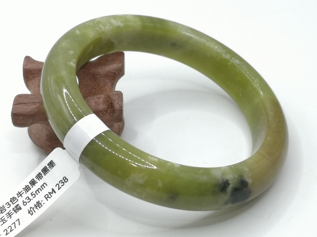 商品名称 (Product Name): B2277 - Natural Serpentine Jade Bangle 63.5mm 天然岫岩3色牛油果带黑墨玉手镯 63.5mm