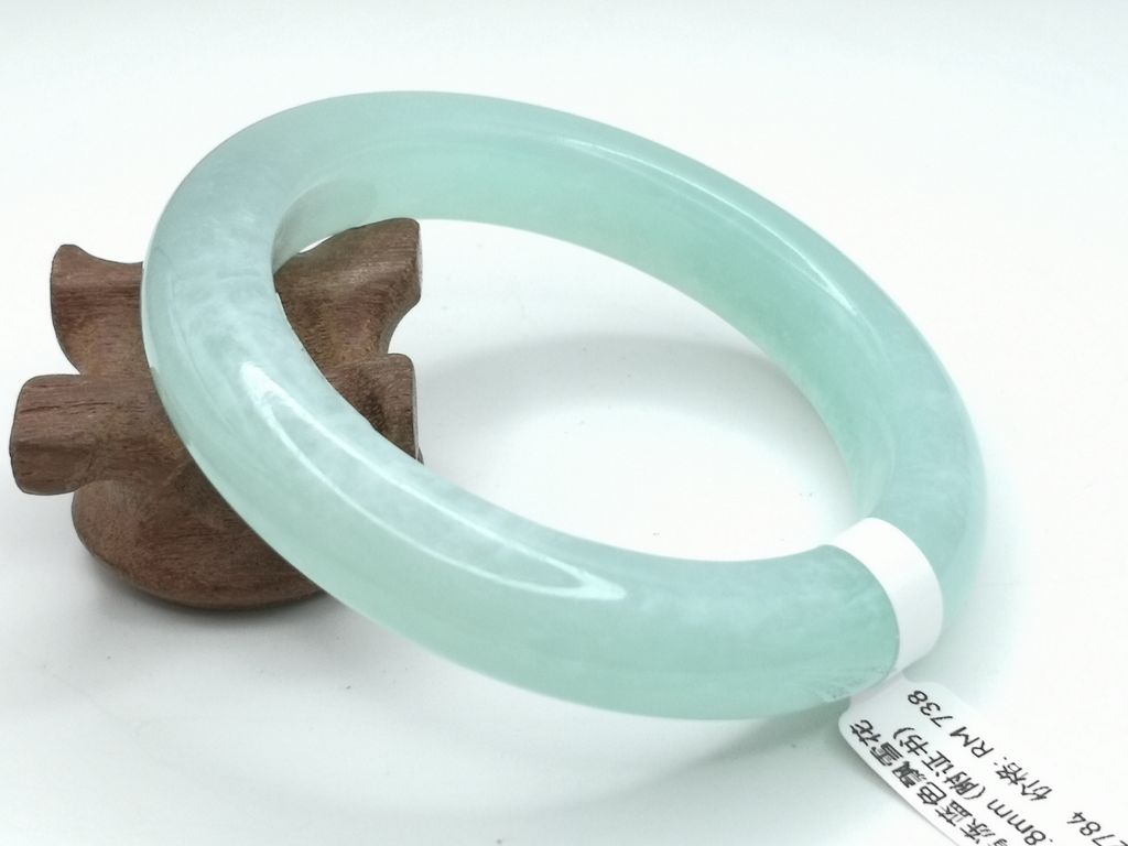 🍀 B2784 - Natural Serpentine TianQing Frozen Jade Bangle 57mm (with certificate) 天然岫岩岫玉 天青冻 蓝色飘雪花玉手镯 57mm (附证书)