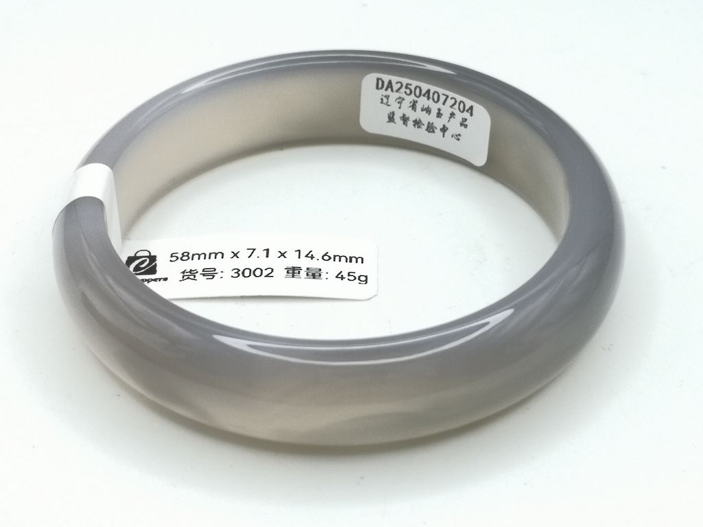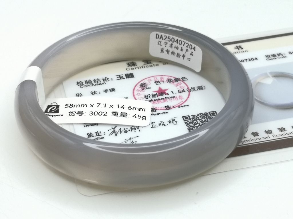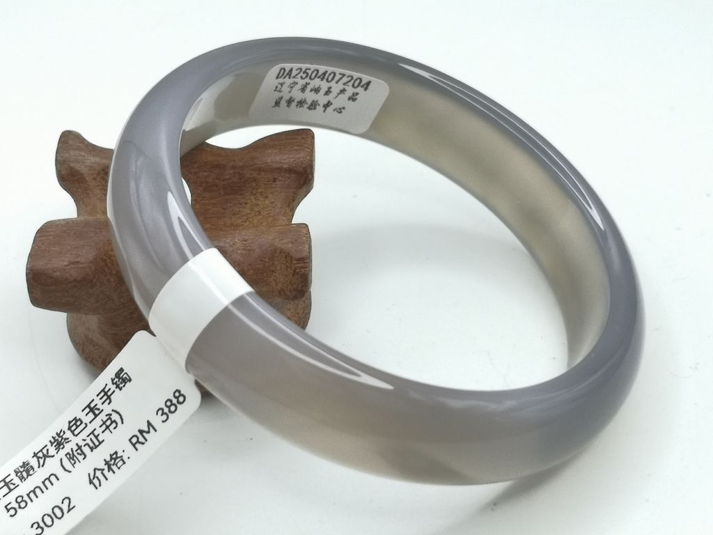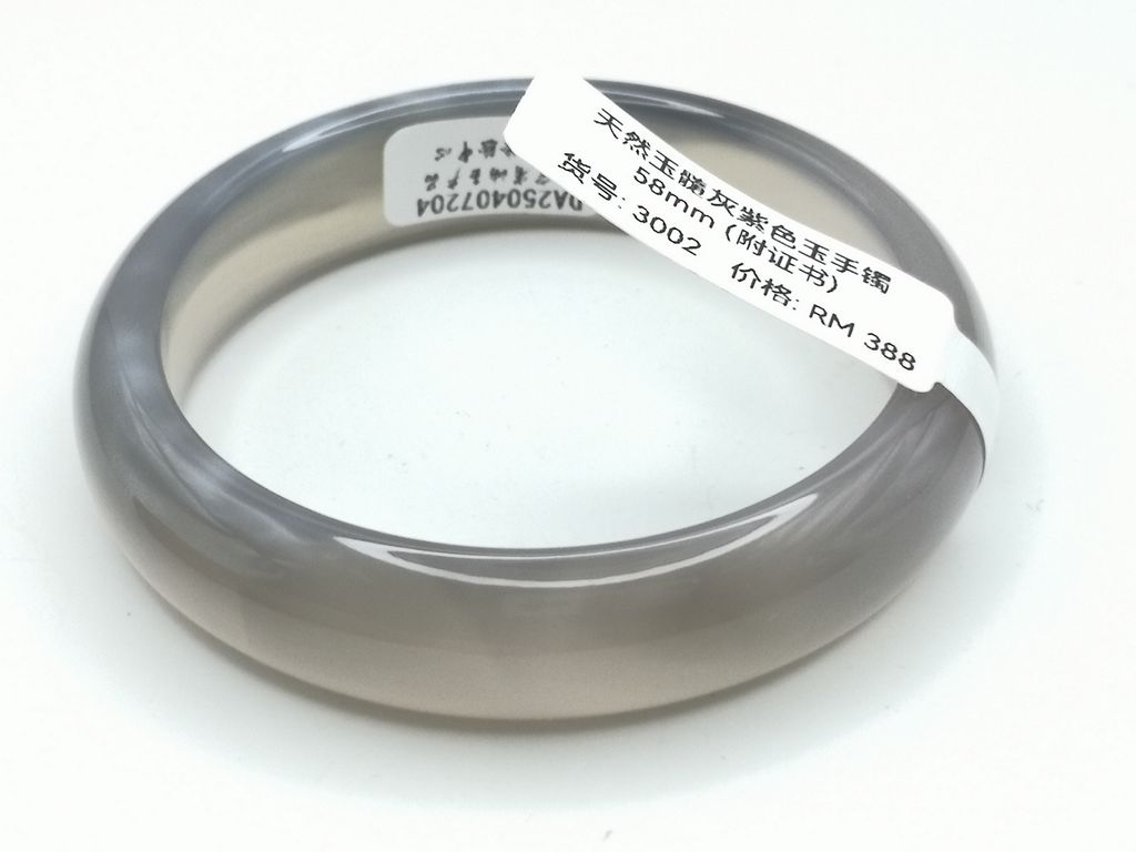 商品名称 (Product Name): B3002 - Natural Chalcedony Bangle 58mm (with certificate) 天然玉髓灰紫色手镯 58mm (附证书)