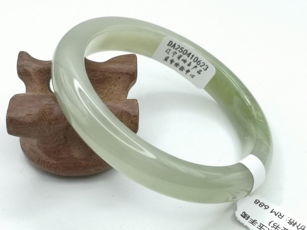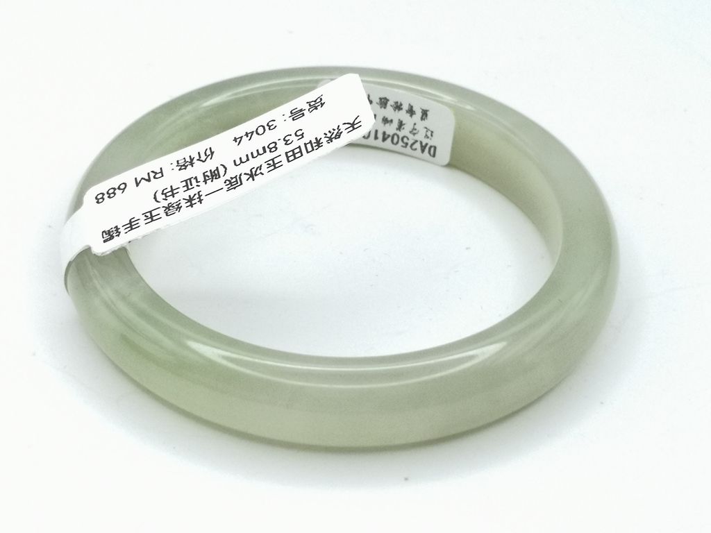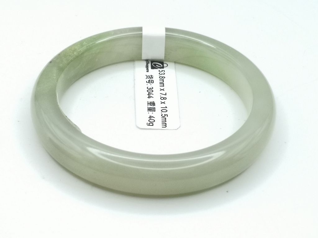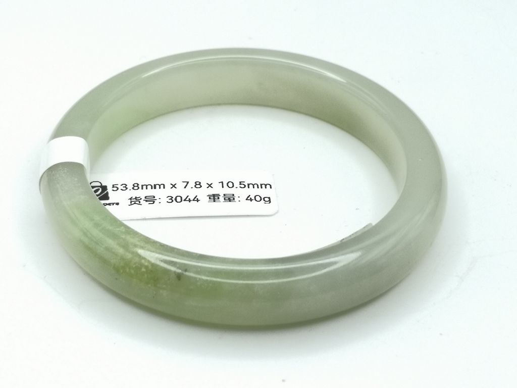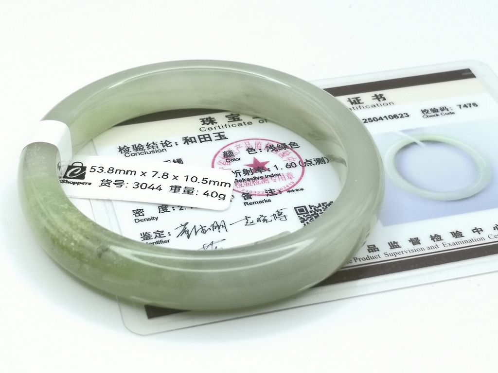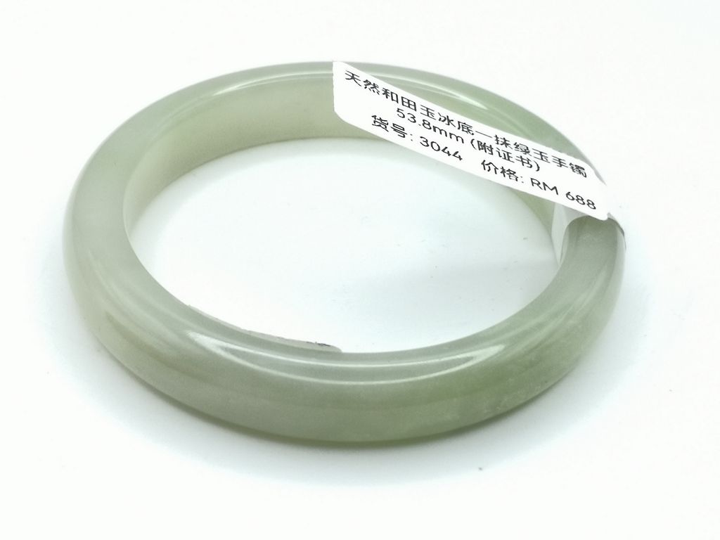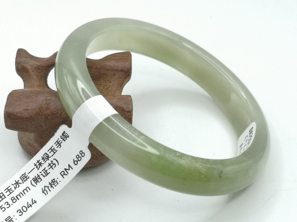 商品名称 (Product Name): B3044 - Natural Nephrite Jade Hetian Jade Bangle 53.8mm (with certificate) 天然和田玉冰底一抹绿玉手镯 53.8mm (附证书)