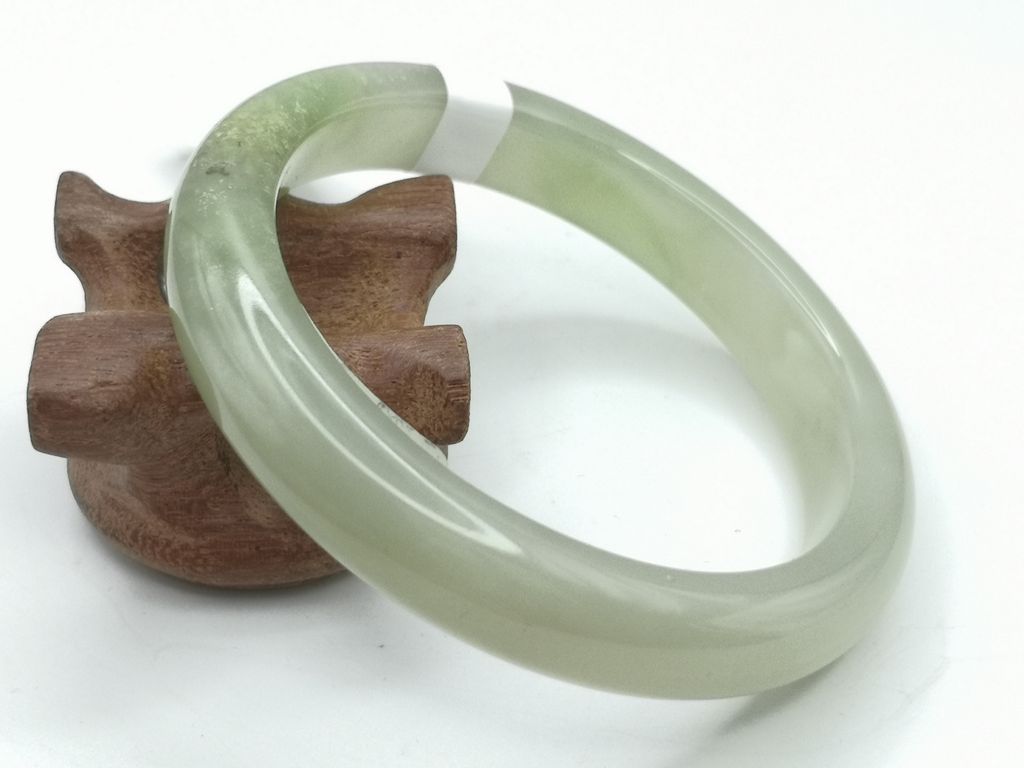 🍀 B3044 - Natural Nephrite Jade Hetian Jade Bangle 53mm (with certificate) 天然和田玉冰底一抹绿玉手镯 53mm (附证书)